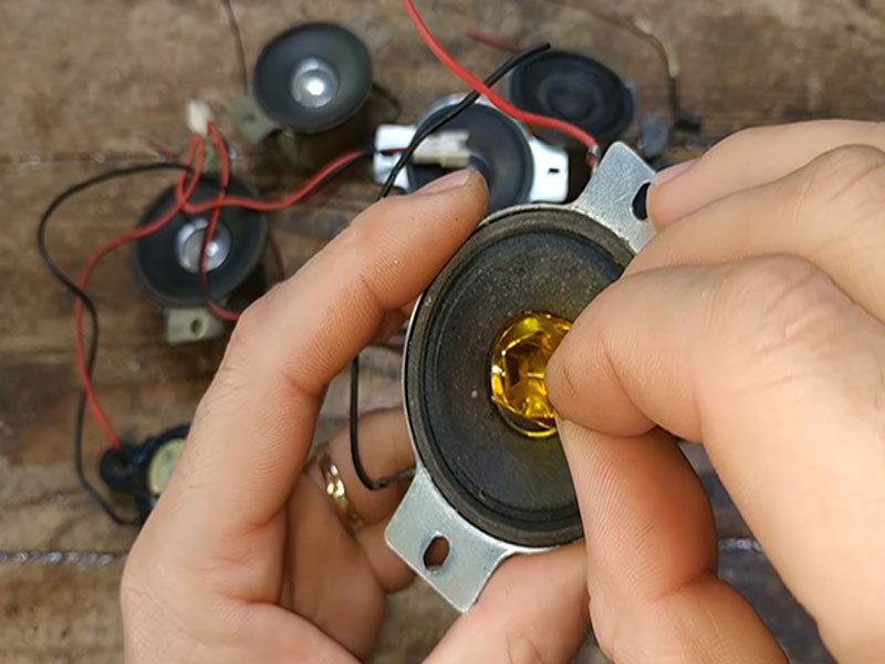 - Đợi keo nguội và cứng lại, sau đó kéo nhẹ nhàng phần keo để màng loa dần trở lại hình dạng ban đầu.
