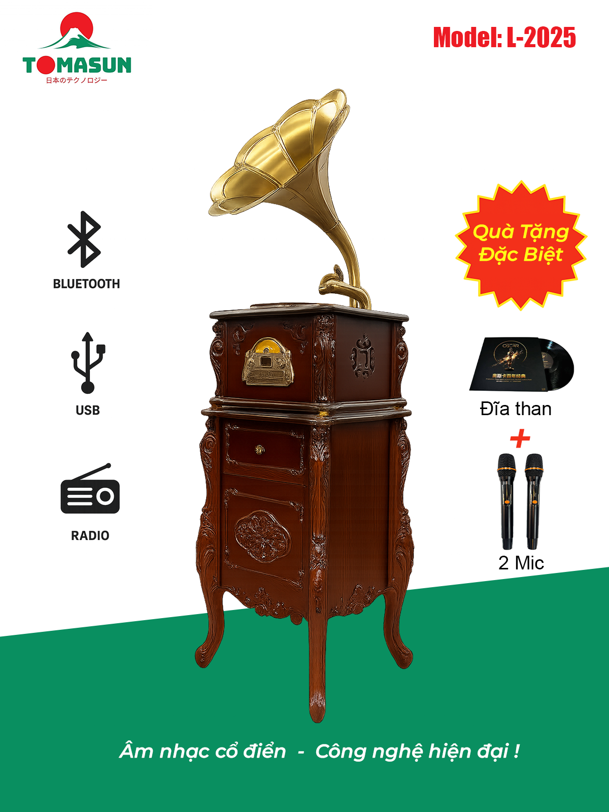 | Đánh giá chất lượng | Mẫu L-1990 được chế tác tinh xảo, kết hợp phong cách hoài cổ và công nghệ hiện đại. Thiết kế bền đẹp, vừa dùng để nghe nhạc vừa tăng tính thẩm mỹ cho không gian. |