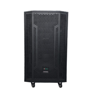 Mặt trước loa được trang bị lưới ê căng kim loại cao cấp sơn tĩnh điện đẹp mắt, giúp bảo vệ hệ thống củ loa khỏi bụi bẩn và tác động từ môi trường bên ngoài. Cạnh dưới loa có một ổ cắm cột thép để bạn có thể dễ dàng lắp đặt loa lên giá đỡ, phù hợp cho các không gian rộng lớn như hội trường, sân khấu,…