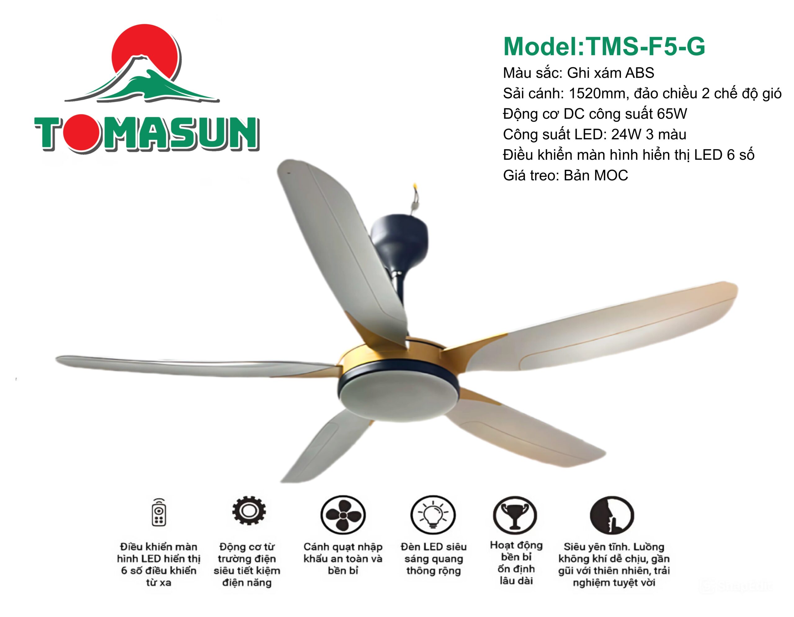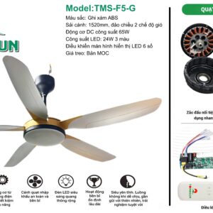 Quạt Trần Tomasun TMS-F5-G – Màu Sang Trọng, Gió Mát Êm Dịu Cho Mọi Không Gian