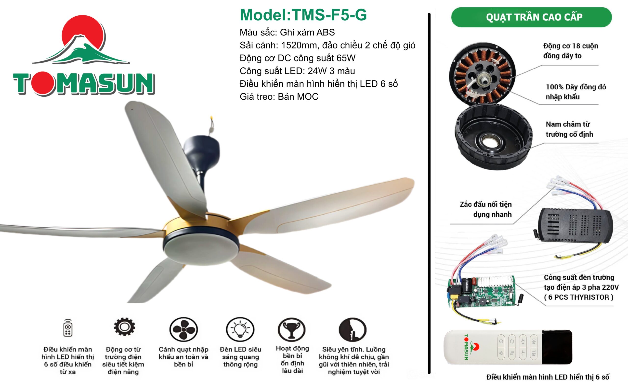 Mang đến làn gió mát lành và vẻ đẹp tinh tế cho ngôi nhà bạn, Tomasun TMS-F5-T là lựa chọn hoàn hảo cho những ai yêu thích sự kết hợp giữa hiệu năng mạnh mẽ và thiết kế đẳng cấp.